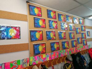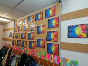 Jeudi 16 octobre, nous avons participé à l’exposition éphémère de la Grande Lessive dont l’invitation était : ‘Jour et nuit, réfléchir les lumières ».