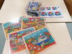 Il nous a apporté des puzzles ainsi qu’un jeu de construction : les briques magiques. Dans sa lettre, le Père-Noël nous félicite pour notre travail mais nous demande de faire des efforts de comportements…