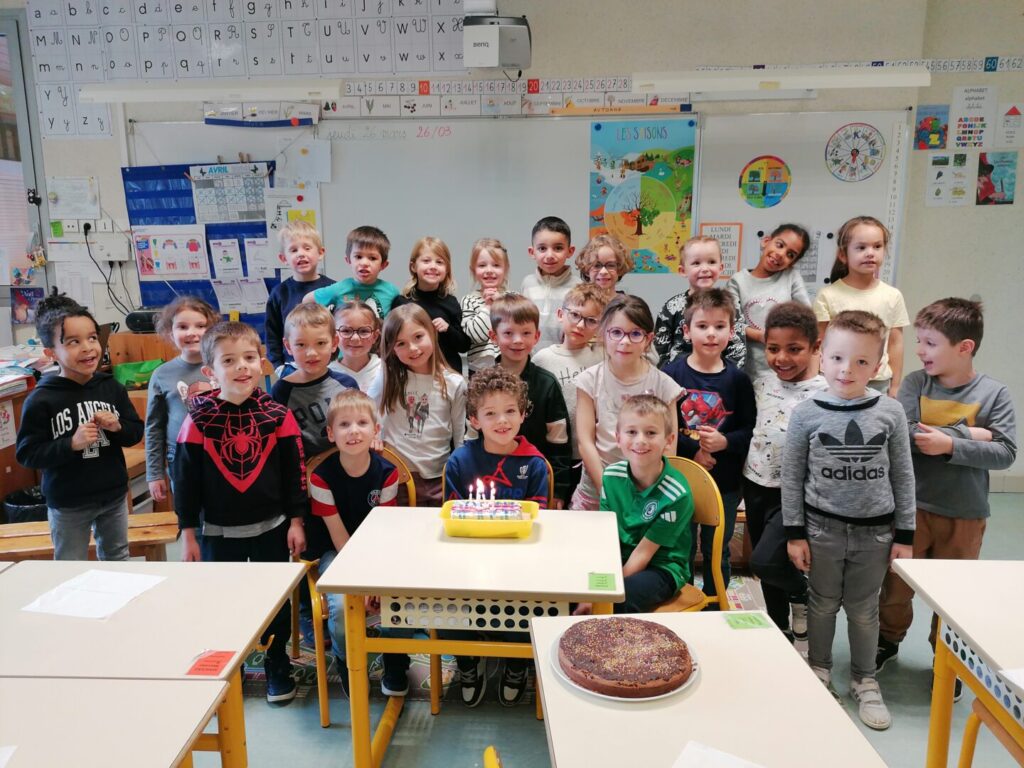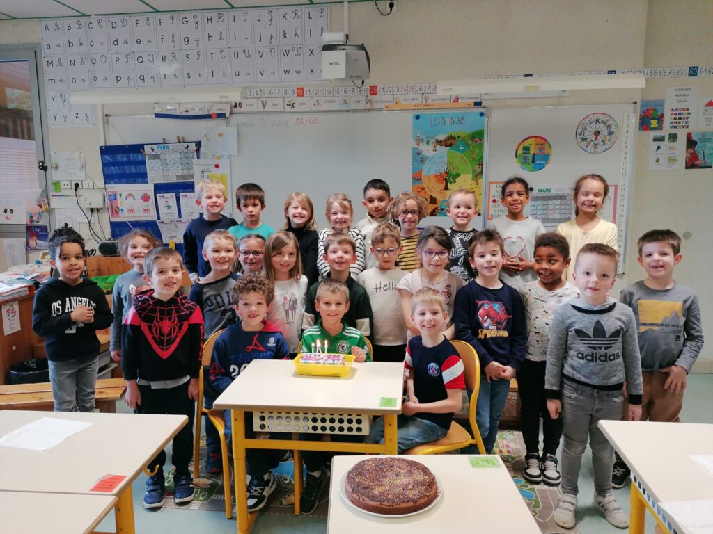 Martin, Mathias et Bastien ont soufflé leurs 6 bougies en classe ce dernier jeudi de mars. Comme toujours la bonne humeur était au rendez-vous et les bonbons et gâteaux fort appréciés !