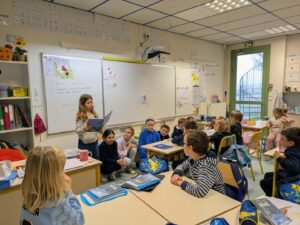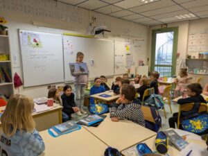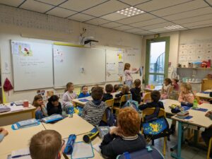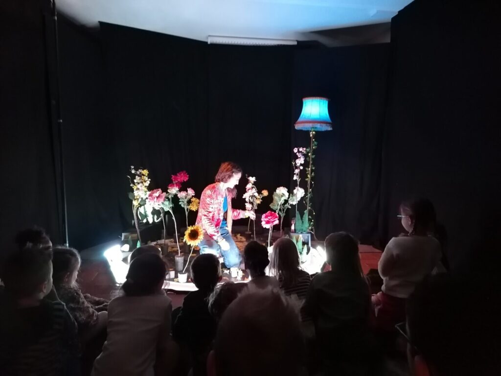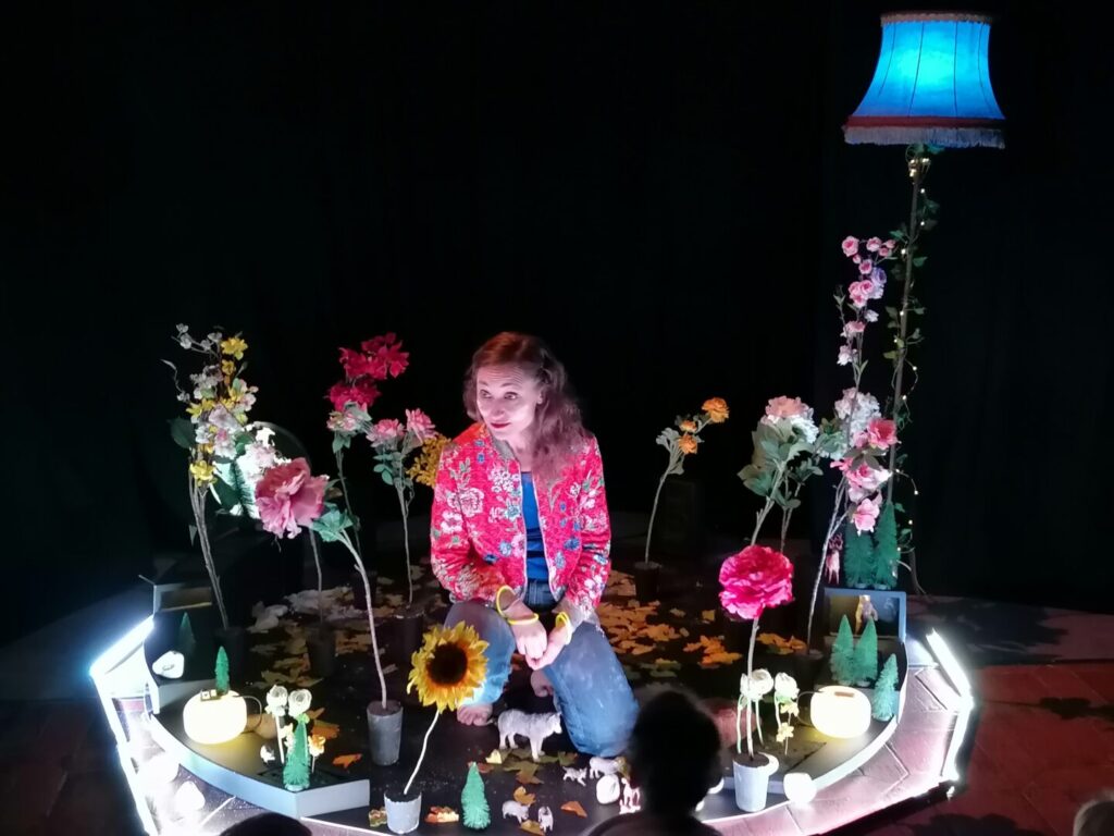 Après ce moment d’émerveillement, quelques échanges ont eu lieu avec la comédienne ; elle a expliqué que le spectacle pouvait avoir lieu grâce à l’aide d’ un metteur en scène (personne qui prévoit tout : accessoires, les actions…) et d’ un technicien (personne qui s’occupe de la mise en place du décor, des lumières…)