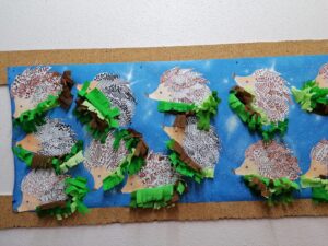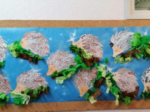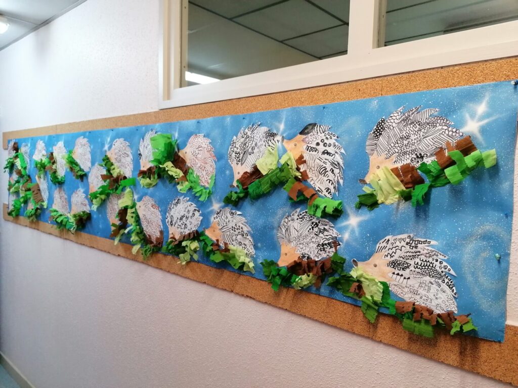 « Au début, c’est le jour. La nuit va bientôt arriver ; c’est le coucher du soleil avec de belles couleurs : rouge, orange et jaune, puis le crépuscule est là ; il commence à faire un peu plus sombre. Des animaux (biche, faon, cerf) arrivent mais doivent se cacher car il ne fait pas totalement nuit et cela peut être dangereux à cause des prédateurs…